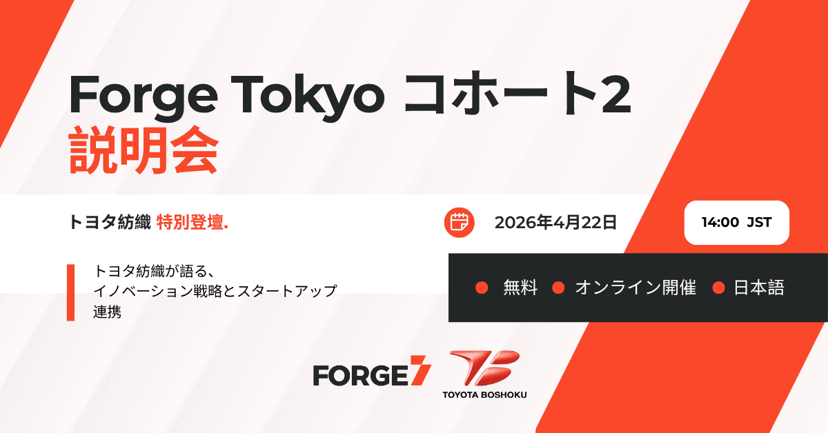主催:株式会社 Technology Seed Incubation(TSI)— Forge プログラムオフィス 📧 hello@forge-tokyo.com